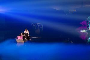 由無錫華美達廣場大酒店、無錫市歌舞劇院及無錫帥元紫砂博物館合力打造的大型國內首創裸眼3D山水實景演出《夢回江南》,全場演出70分鐘,題材取自于耳熟能詳的江南傳說和民間故事:范蠡西施、水漫金山、梁祝化蝶、乾隆下江南、二泉映月、阿福呈祥,藝術性反映了獨特的吳文化面貌。